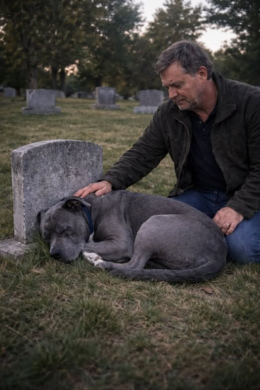 Leo, pitbull dal mantello grigio, continuava a scappare da casa. Seguendolo, il proprietario scopre che ogni fuga lo portava davanti alla tomba di un uomo.
