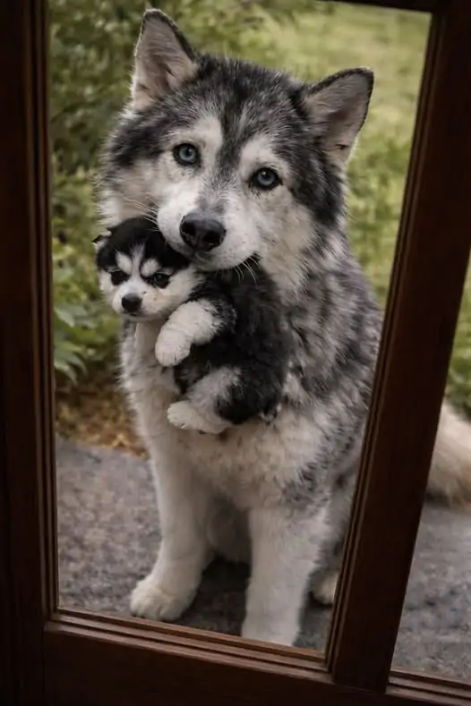 La svolta è arrivata in modo diretto. Una mattina si è sentito un rumore alla porta. Aprendo, la Husky era lì. Non era sola.
