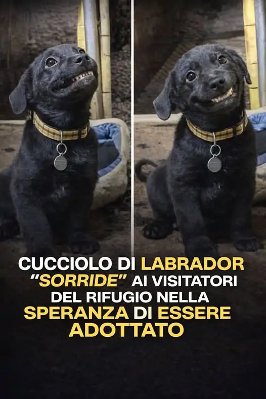 Bastava che qualcuno si avvicinasse per vedere il piccolo Labrador nero mostrare i dentini in una sorta di sorriso, un gesto spontaneo che attirava immediatamente l’attenzione.
