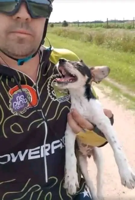 Una cucciola lasciata sola e affamata viene salvata da un uomo in bicicletta: un incontro improvviso cambia il suo destino e le regala una nuova vita.