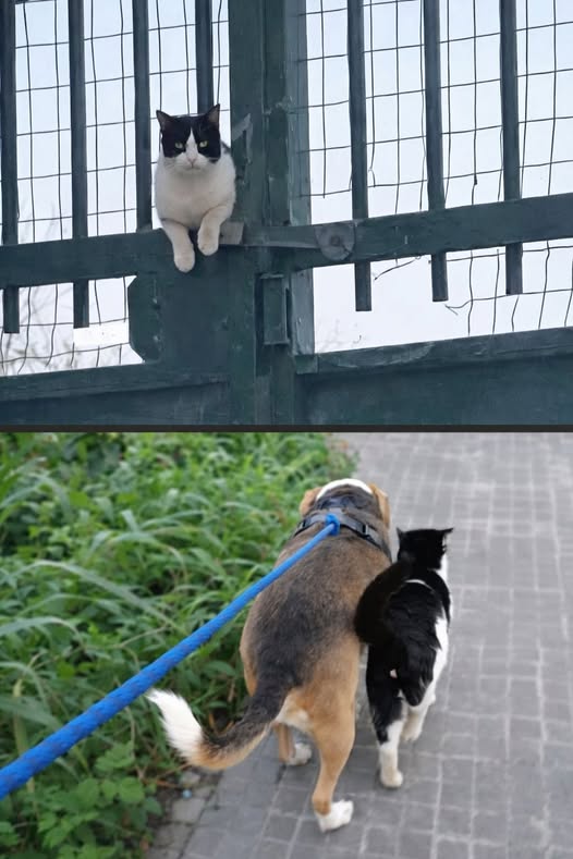 Gatto aspetta ogni giorno cane anziano al canile per passeggiare insieme