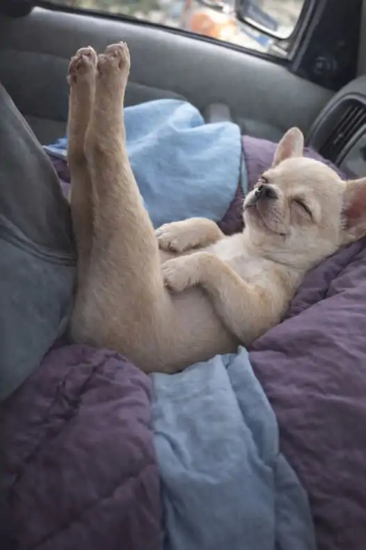 Durante il viaggio, il cucciolo ha mantenuto lo stesso atteggiamento tranquillo.