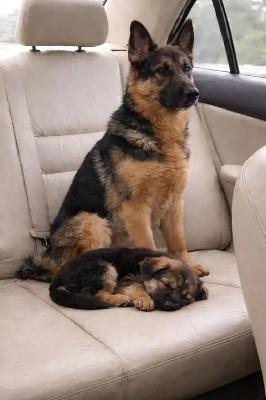 La cucciola e la madre sono salite insieme in macchina.