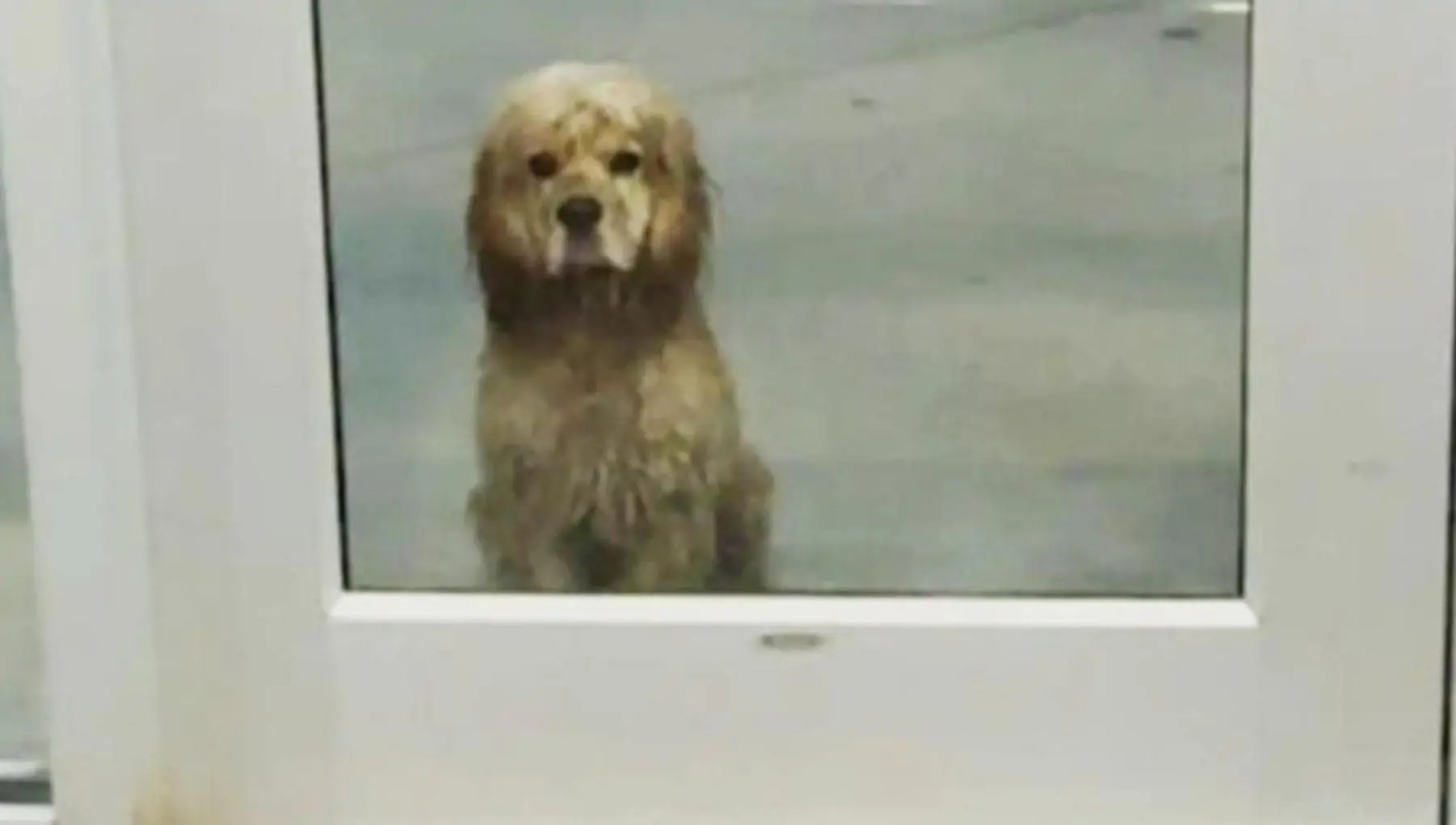 Una cagnolina adottata aspetta la sua padrona sotto un acquazzone fuori da una clinica, rifiutando di ripararsi e dimostrando una fedeltà che ha colpito presenti e personale.