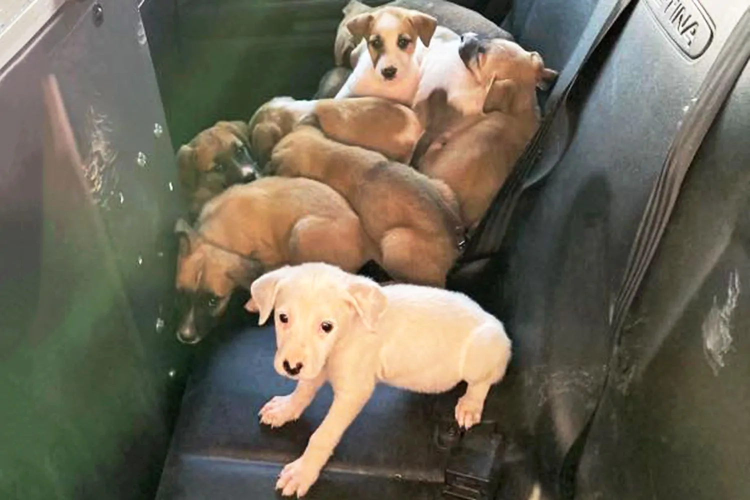 All’interno sono stati trovati due cuccioli, ancora vivi, in evidente stato di paura e tremore.