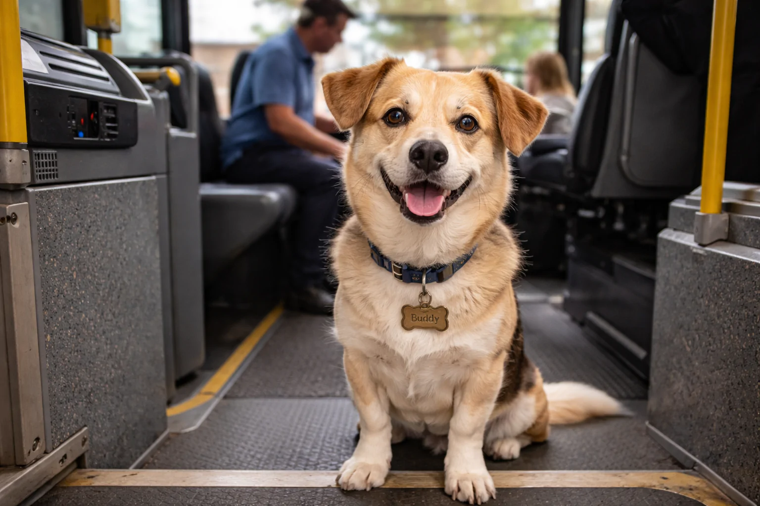 Oggi il cane indossa una targhetta e si muove tra gli autobus come un vero membro della squadra.