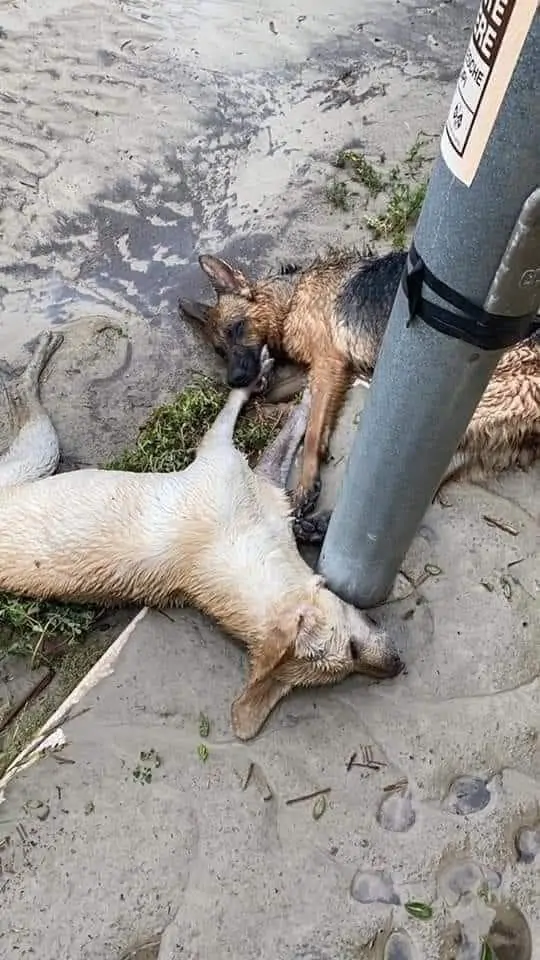 Quando l’acqua si è ritirata, i due cani sono stati ritrovati senza vita.