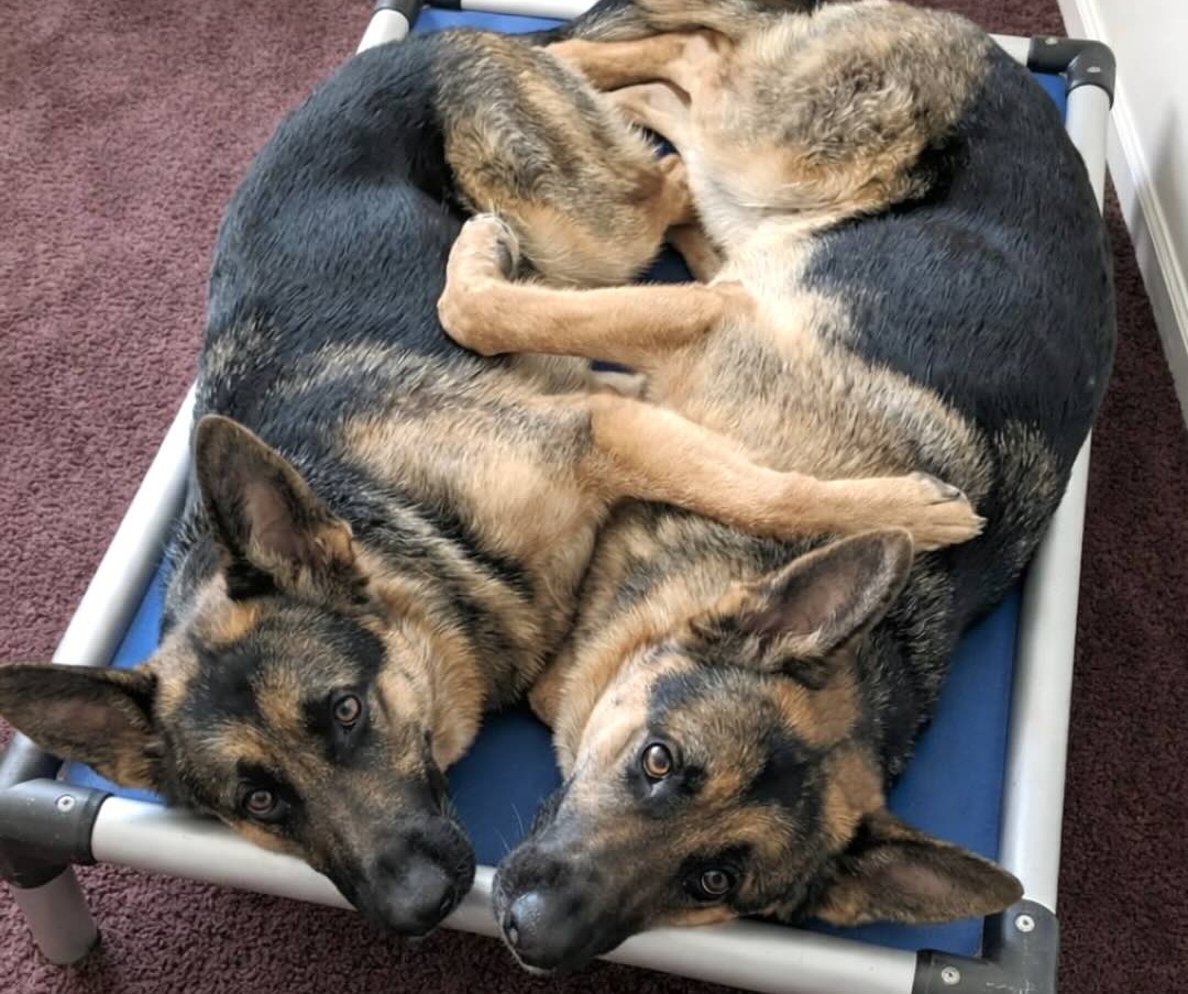Rex e Naya, uniti da un legame evidente, erano sdraiati uno accanto all’altra con le zampe intrecciate, i corpi vicini e sincronizzati nei movimenti.