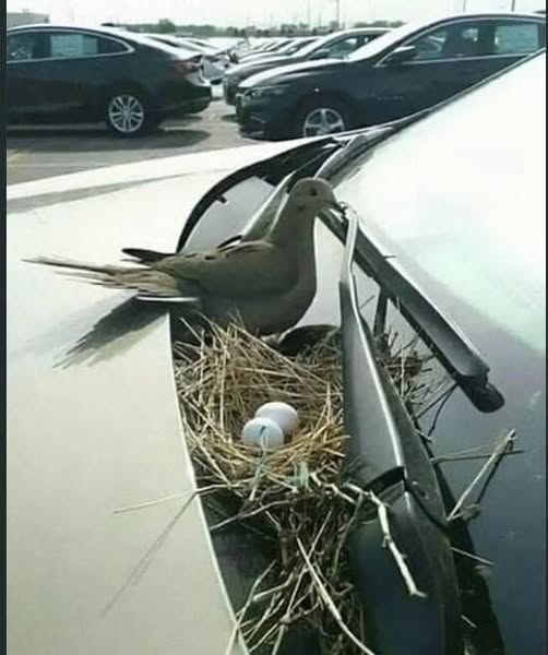 Un uomo decide di non usare l’auto per settimane dopo che una colomba costruisce il nido sul parabrezza, scegliendo di proteggere uova e vita.
