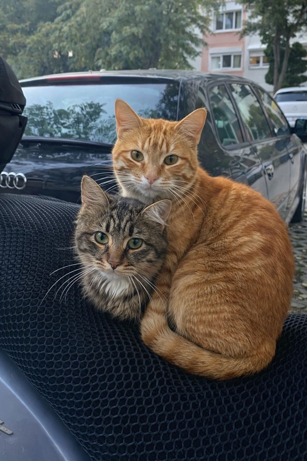 Due gatti vengono lasciati sulla strada tra le auto. Spaventati e tremanti, vengono recuperati dopo ore difficili e messi in sicurezza.