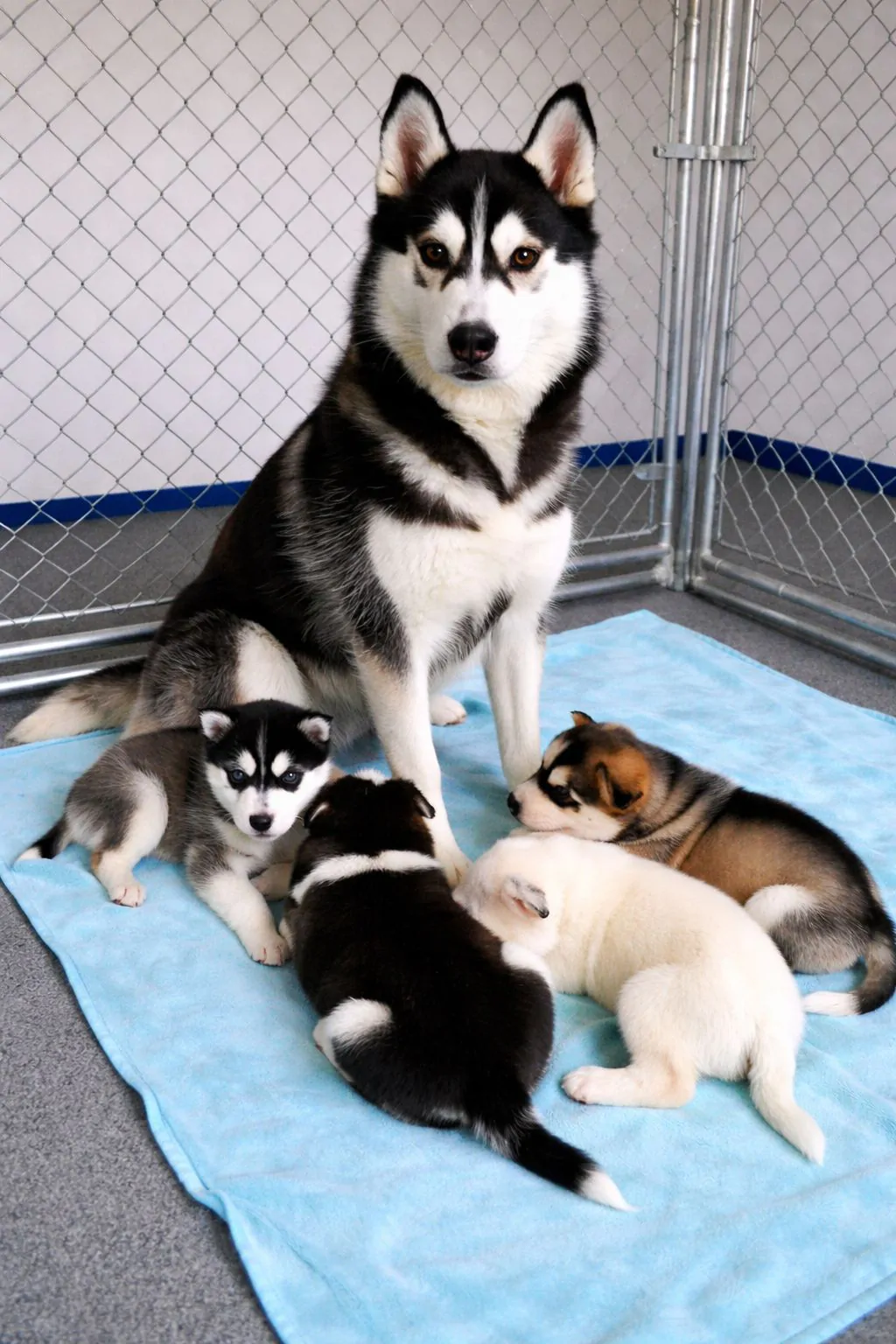 Dopo aver garantito ai piccoli tutto il necessario, la cagnolina resta in rifugio, in attesa di una nuova collocazione.