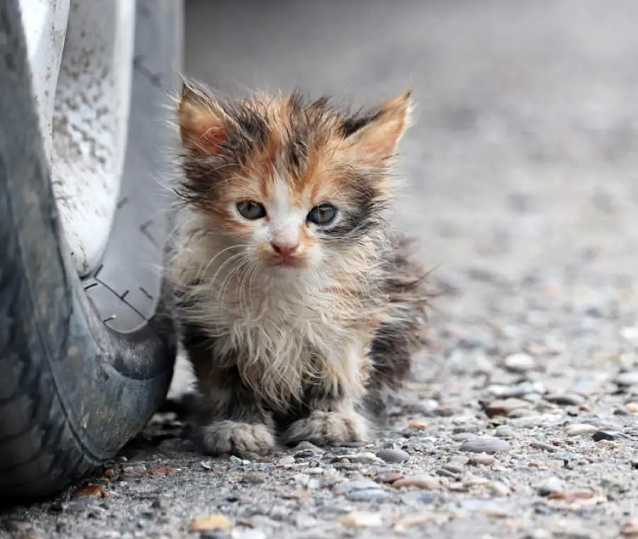 Il gattino era lì, fermo, sporco e visibilmente in difficoltà, senza alcuna capacità di reagire.