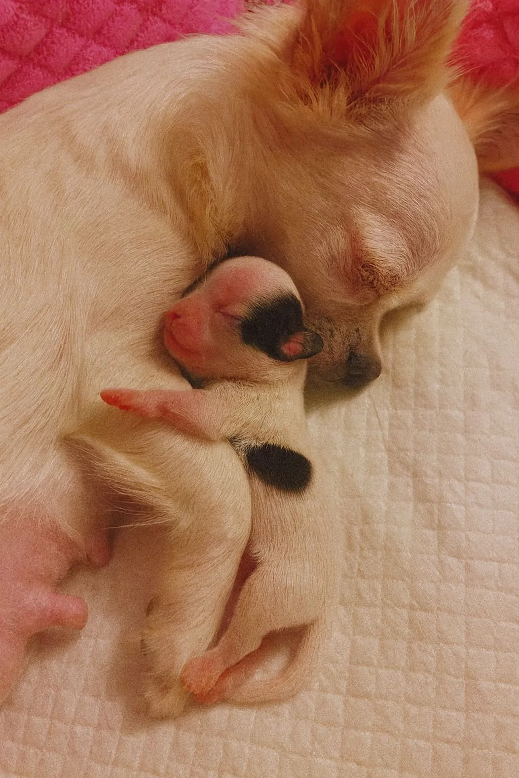 Luna, alla sua prima cucciolata, mostra un forte istinto materno. Tra i piccoli, uno più fragile riceve attenzioni costanti e cure continue giorno e notte.