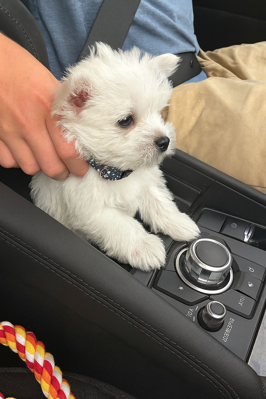 Il cucciolo ha assunto una posizione abituale all’interno dell’auto.