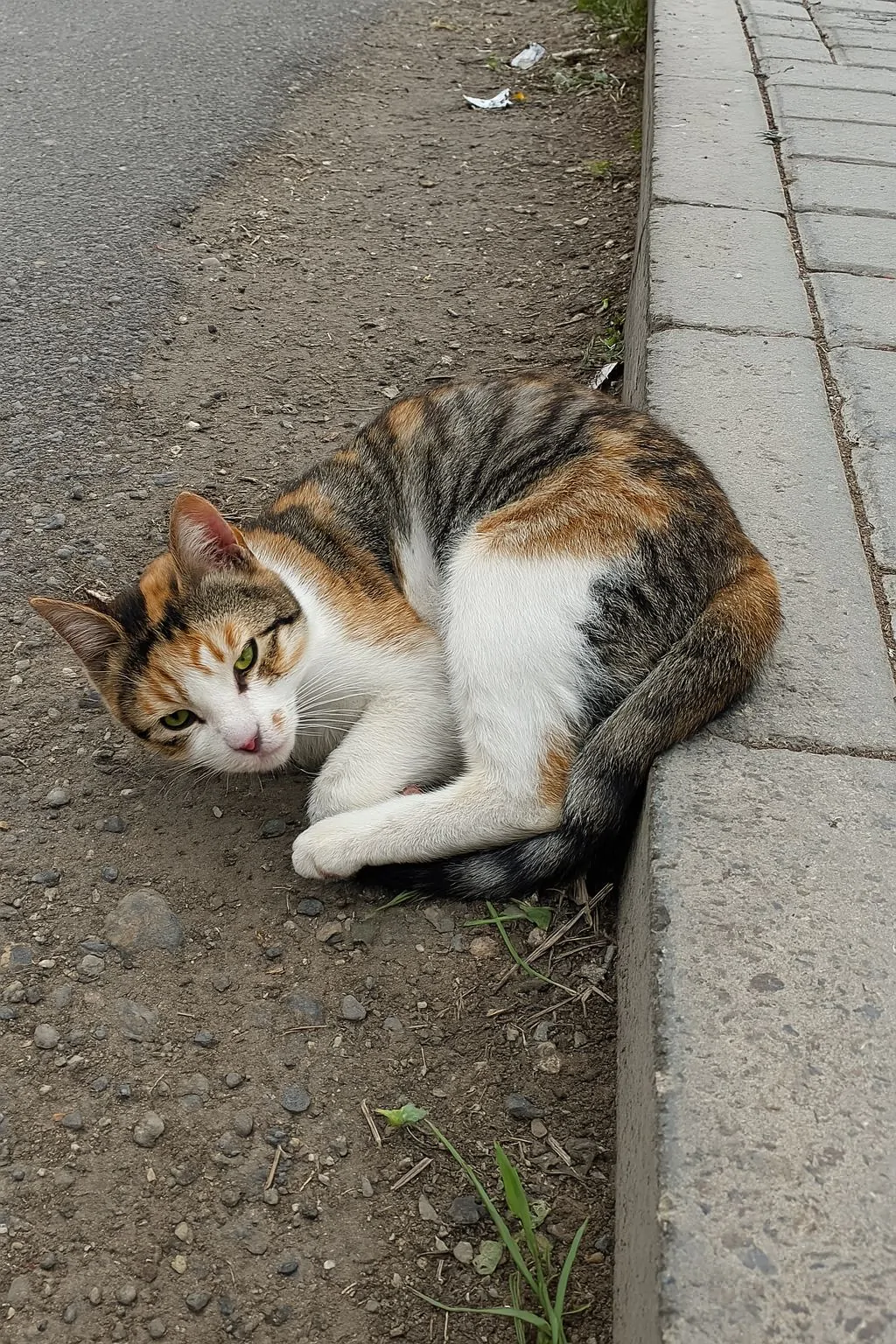 La segnalazione riguarda una gatta trovata accanto a un marciapiede, in posizione immobile e in evidente stato di debilitazione. L’animale non mostrava reazioni significative al passaggio di veicoli o persone, rimanendo disteso sull’asfalto senza tentare di allontanarsi.