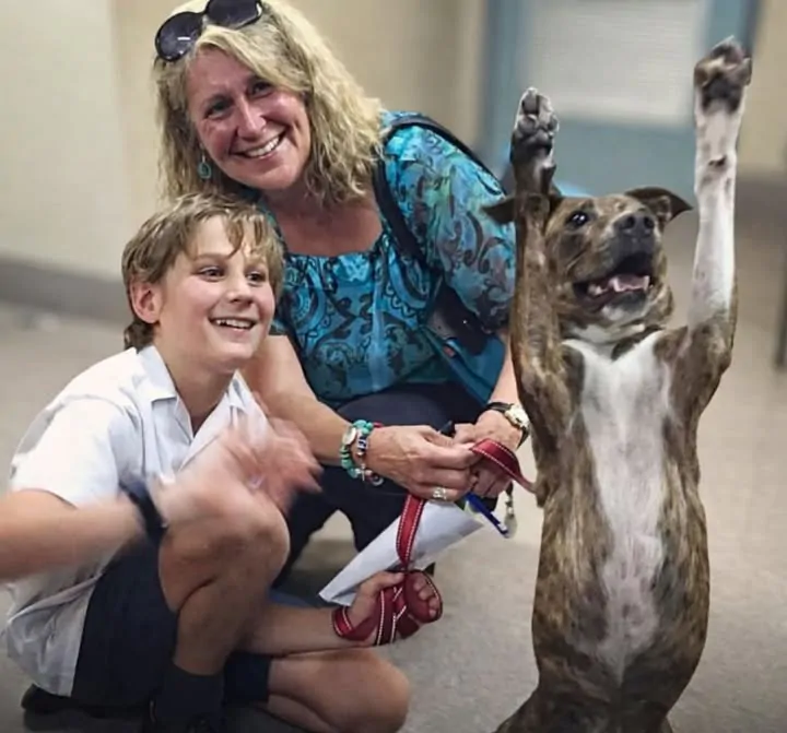 Nell’immagine, Coso appare con le zampe anteriori sollevate, in una posizione insolita. A corredo dello scatto è stata riportata la dichiarazione: “Questa potrebbe essere la nostra foto di adozione più felice” e “Coso ha una casa. È così emozionata che alza le zampette in aria e le agita.”