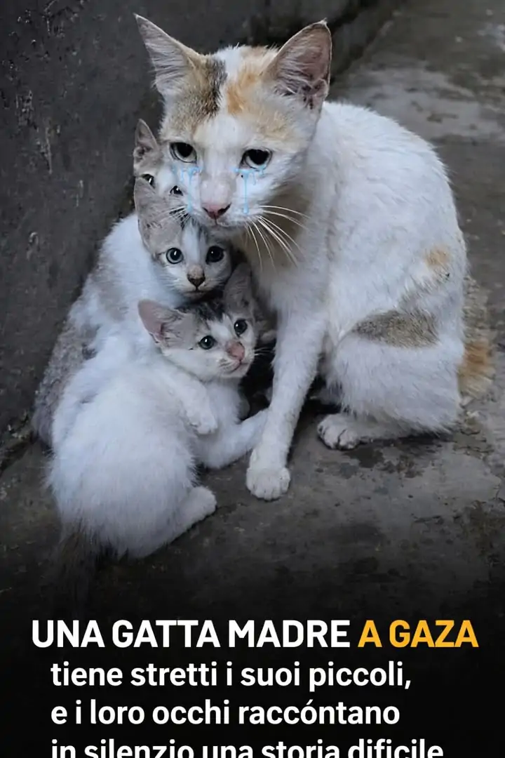 Un’immagine scattata nella Gaza ha iniziato a circolare sui social network, attirando l’attenzione di migliaia di utenti. Nello scatto si vede una gatta adulta rannicchiata tra detriti e strutture danneggiate, mentre tiene stretti a sé i suoi piccoli.