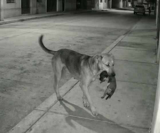 Ripresa da una telecamera, una cagnolina randagia deposita i suoi cuccioli davanti a una clinica veterinaria, cercando per loro una possibilità di sopravvivenza.
