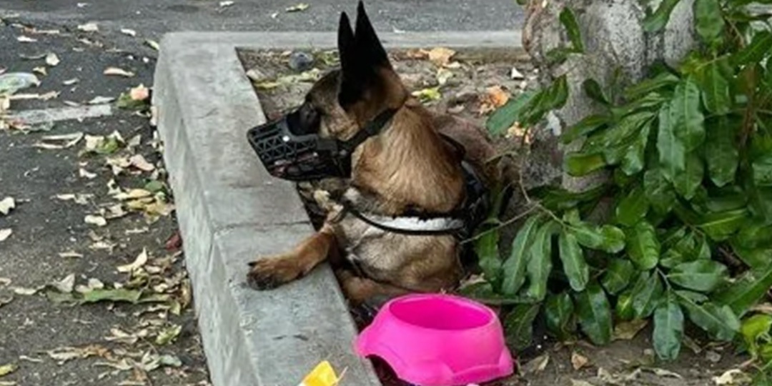 Una femmina di Belgian Malinois è stata lasciata su un marciapiede con cuccia e giochi, rimanendo ferma in attesa del ritorno della famiglia.
