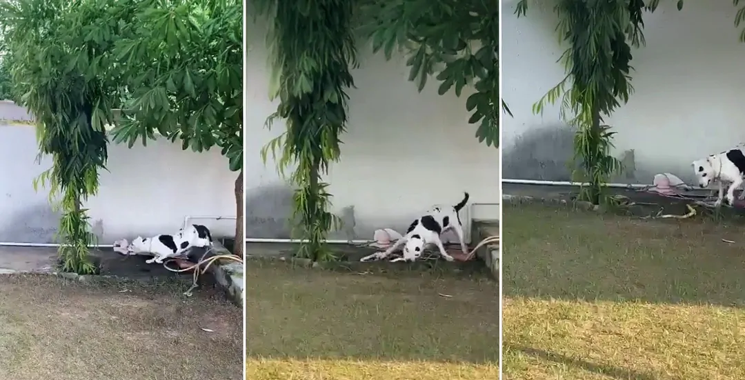 Il rettile velenoso rappresentava una minaccia diretta per i minori, che si trovavano a breve distanza. Il cane ha rapidamente colmato lo spazio tra sé e il cobra, attirando l’attenzione dell’animale e impedendogli di avvicinarsi ulteriormente.