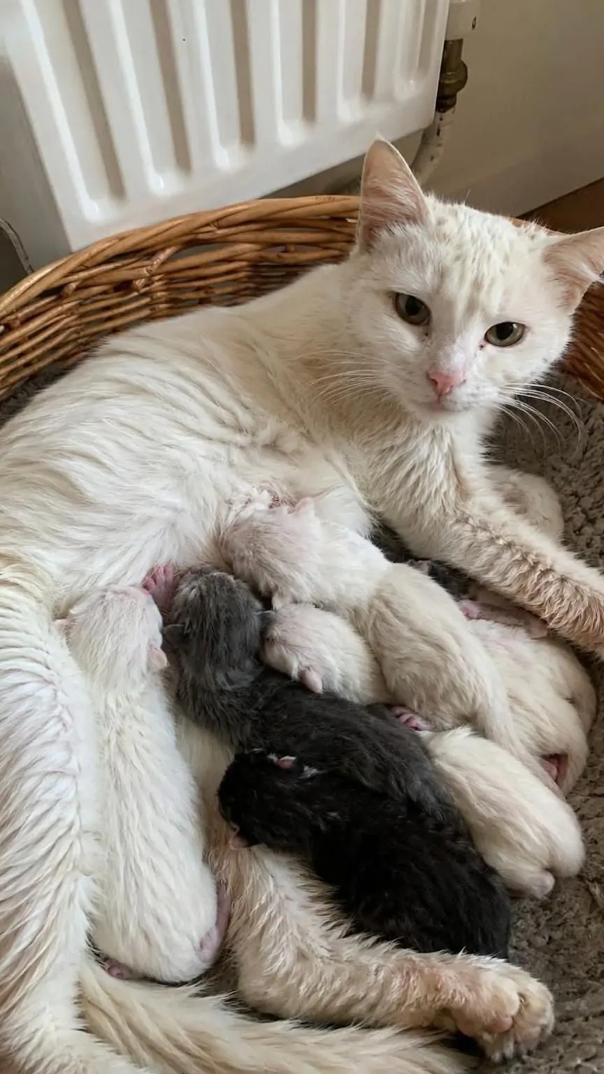All’alba del terzo giorno, la situazione ha avuto un’evoluzione naturale: la gatta ha iniziato il parto. “Accanto a me, con il respiro affannoso ma gli occhi pieni di fiducia, ha dato alla luce sei piccoli gattini”, ha raccontato la donna. I cuccioli sono nati uno dopo l’altro, sotto lo sguardo attento della madre, che si è presa cura di loro fin da subito. Oggi i gattini sono al sicuro insieme a Plume, e la casa che prima era silenziosa è stata trasformata dalla loro presenza.