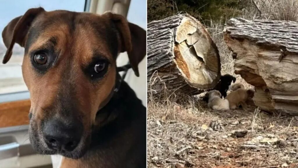 Cane randagio conduce donna al suo “tesoro” di 16 cuccioli nascosti in un tronco d’albero.