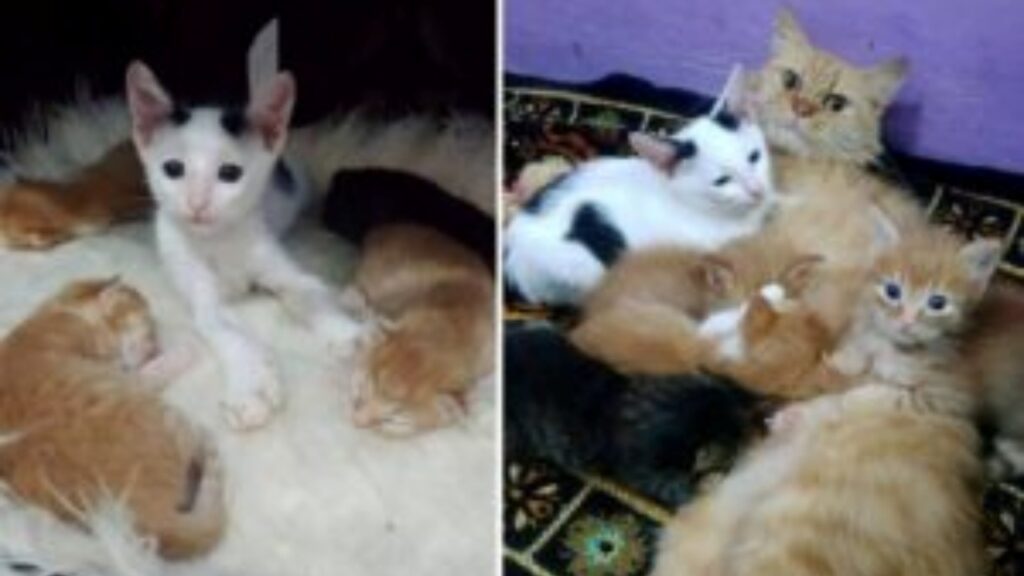 “Dal freddo e dalla pioggia alla calda accoglienza di una famiglia: la trasformazione di una cagnolina e dei suoi cuccioli.”